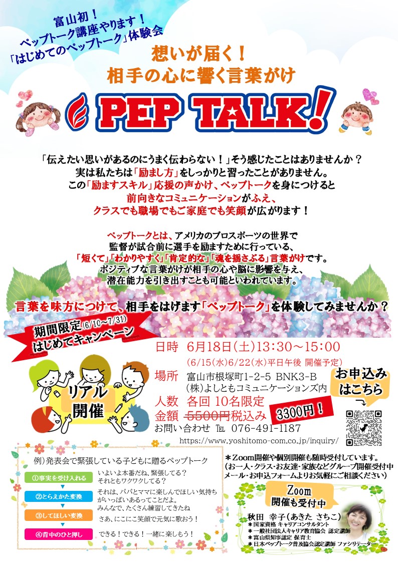 富山初!「はじめてのペップトーク」体験会を開催します