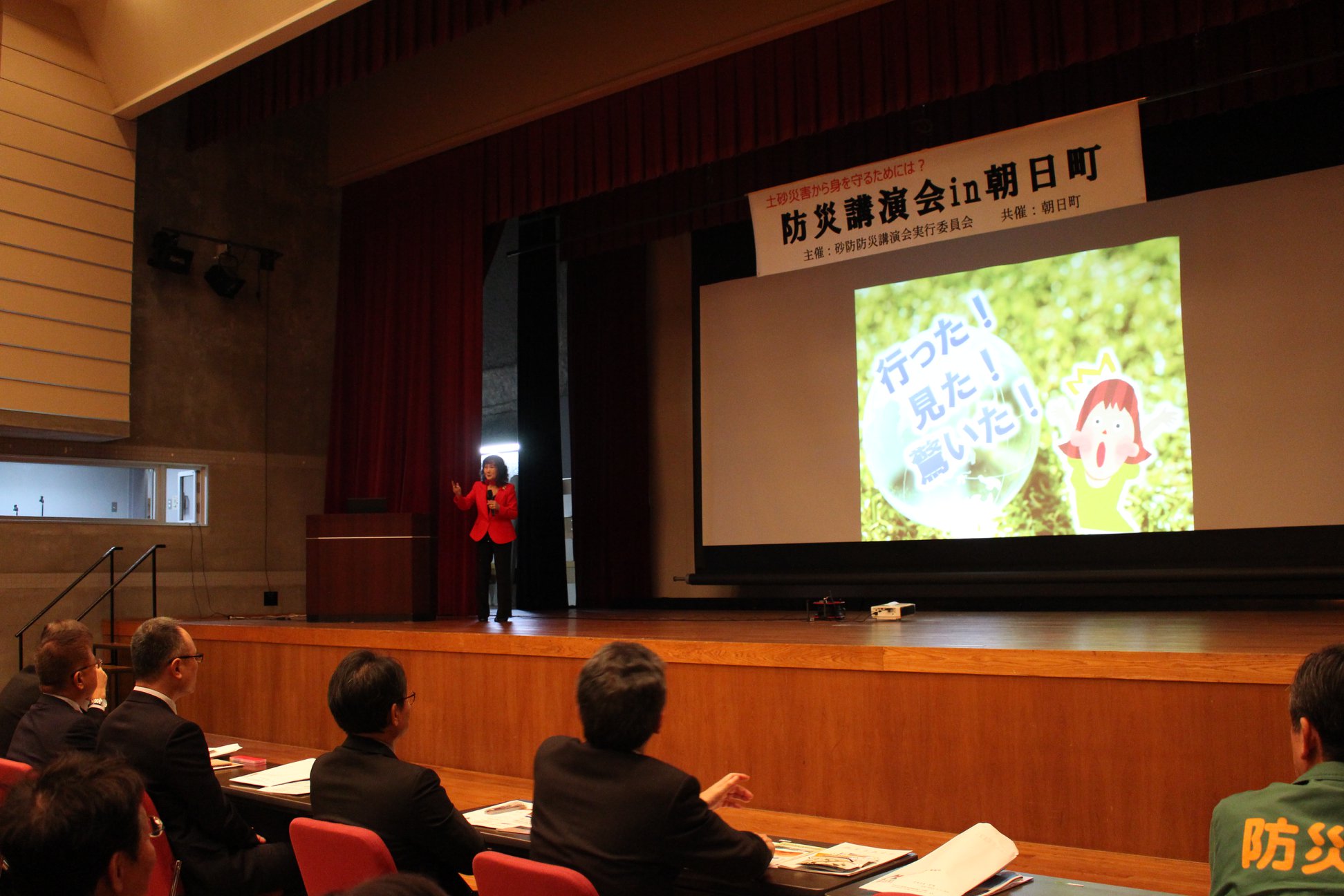 朝日町のアゼリアホールで満員の聴衆に災害への危機感をお伝えしました。