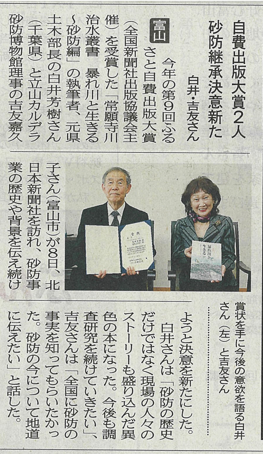 弊社会長の吉友が受賞しました自費出版大賞の賞状贈呈式が北日本新聞社で行われ、その様子をご紹介いただきました。