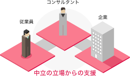 外部のメンターとして従業員への理解者となり助言や行動面、精神面の支援を行います。